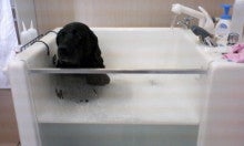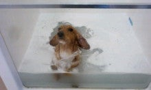 最初は犬かきをして泳いでましたが、次第にのほほ~んとお風呂につかっていました