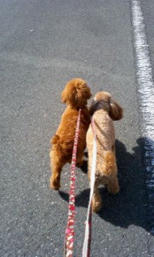 ちなみにうちの娘達の散歩はピッタリくっついてないと気が済まないようです