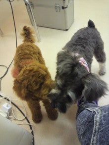 トリミングのあとママを待ちながらうちのメイちゃんと遊んでました