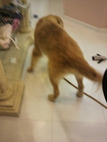 プーさんのおもちゃをくわえてウロウロ