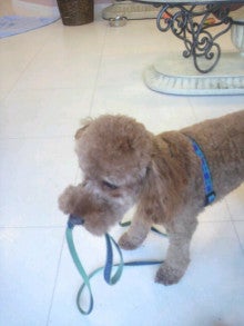 リードをくわえて待ってました