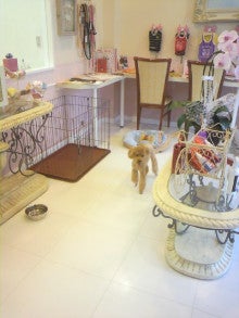 サロンの中を探検するチョコ