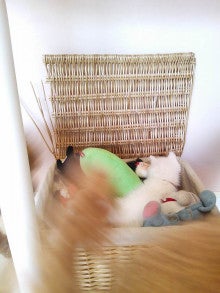 オモチャ箱に潜り込むミー