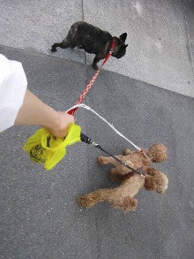 ガンモのリードとメイのリードを一緒に持って