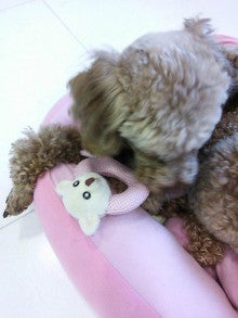 ベッドでオモチャを抱えているので