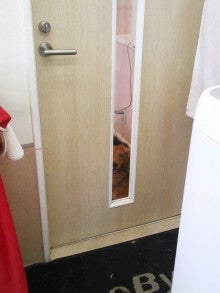 トリミング室を覗くチョコくん