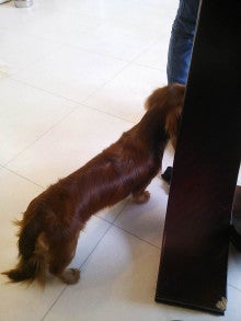 プッチちゃんママの匂いを嗅ぐチョビ