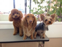 ヨーキーのクララちゃん&ダックスのダリアちゃん&プードルのあんずちゃん&プードルのぱみゅちゃん