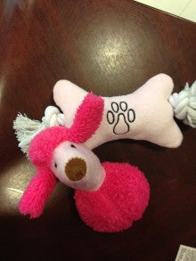 プードルちゃんと綱付きのオモチャ