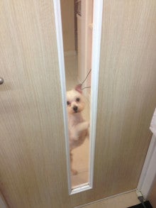 ドアを必死にノックしてるモコくん