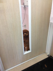 トリミング室のドアの前まで来ちゃうから
