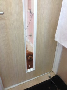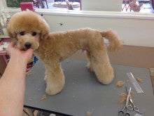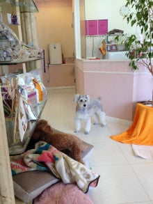 トリミング待ちをしているラッキーと