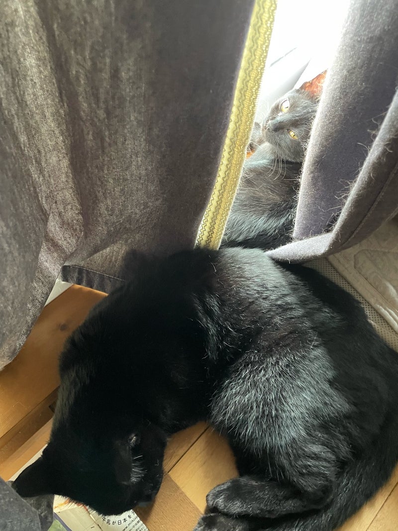 のそばで寝るちびくろ