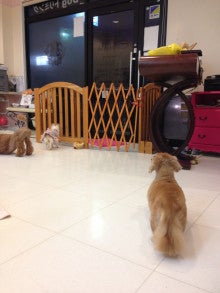 マナーベルトをつけてサロンを散策